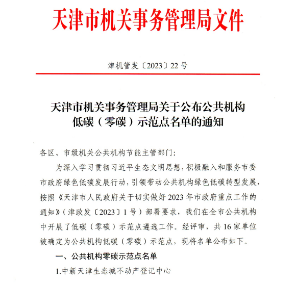 为深入贯彻习近平生态文明思想,积极融入和服务市委市政府绿色低碳发展行动,引领带动公共机构绿色低碳转型发展,由市机关事务管理局组织的公共机构低碳(零碳)示范点单位遴选工作近期落下帷幕。我校报送的项目经过申报、实地审核等环节获得天津市公共机构低碳示范点单位称号。